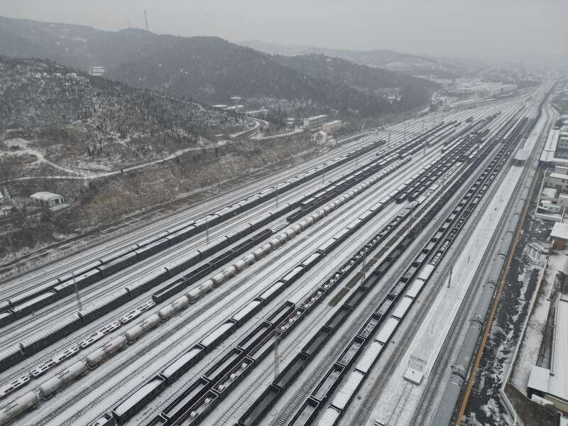 1月19日,河南、山西多地迎来降雪,为应对大范围降雪,中国铁路郑州局集团焦作车辆段迅速启动应急预案,现场检车员加大对车辆走行部、车钩缓冲装置等关键部位检查力度,对关键设备状态逐一确认,全面消除安全隐患,确保恶劣天气下行车安全和人身安全。图为1月19日焦作车辆段管内的场景。宋子文/摄